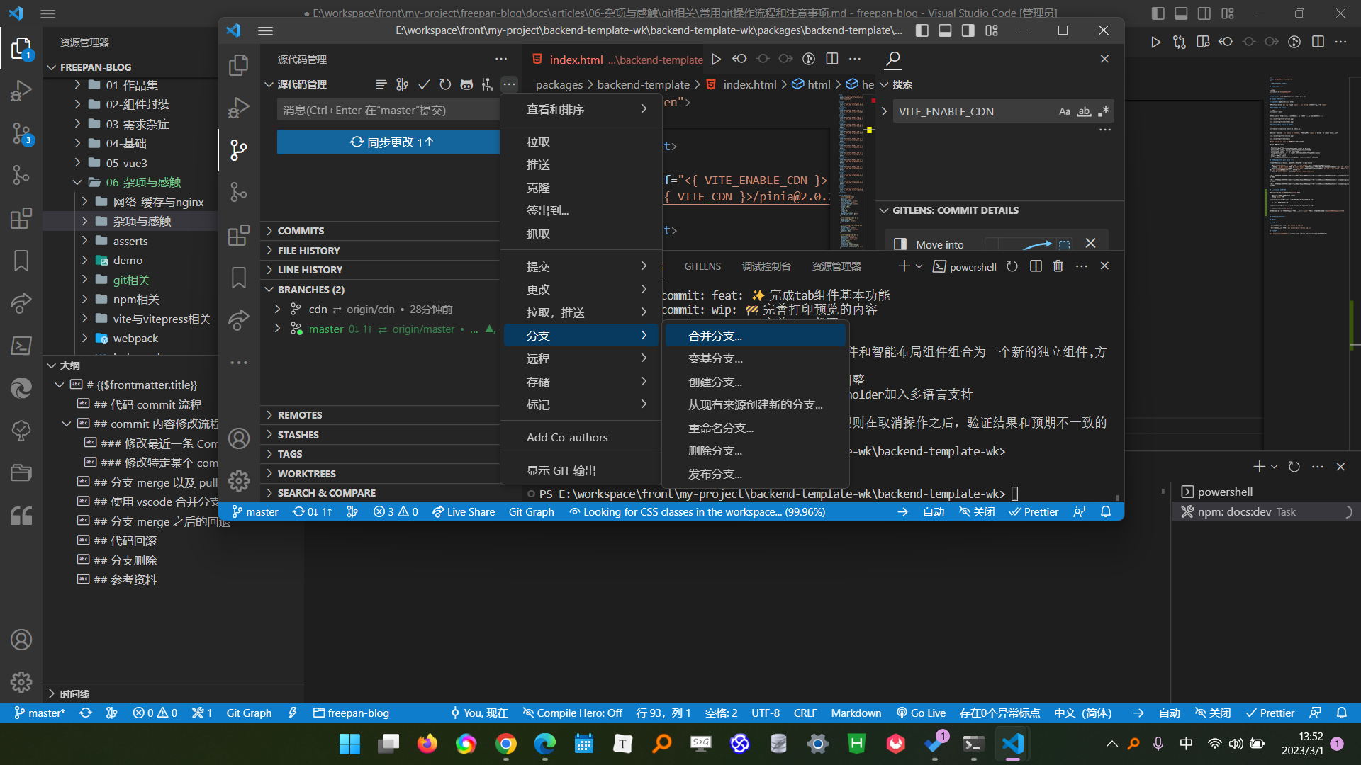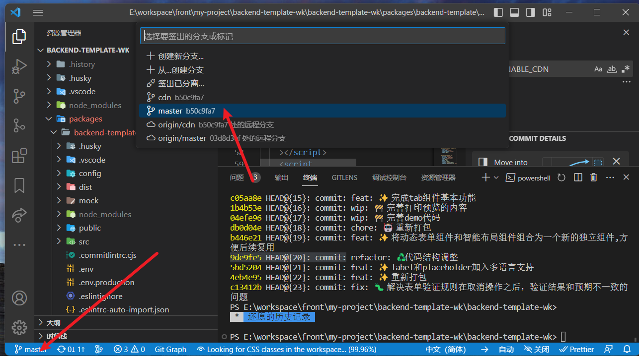 使用 vscode 合并分支