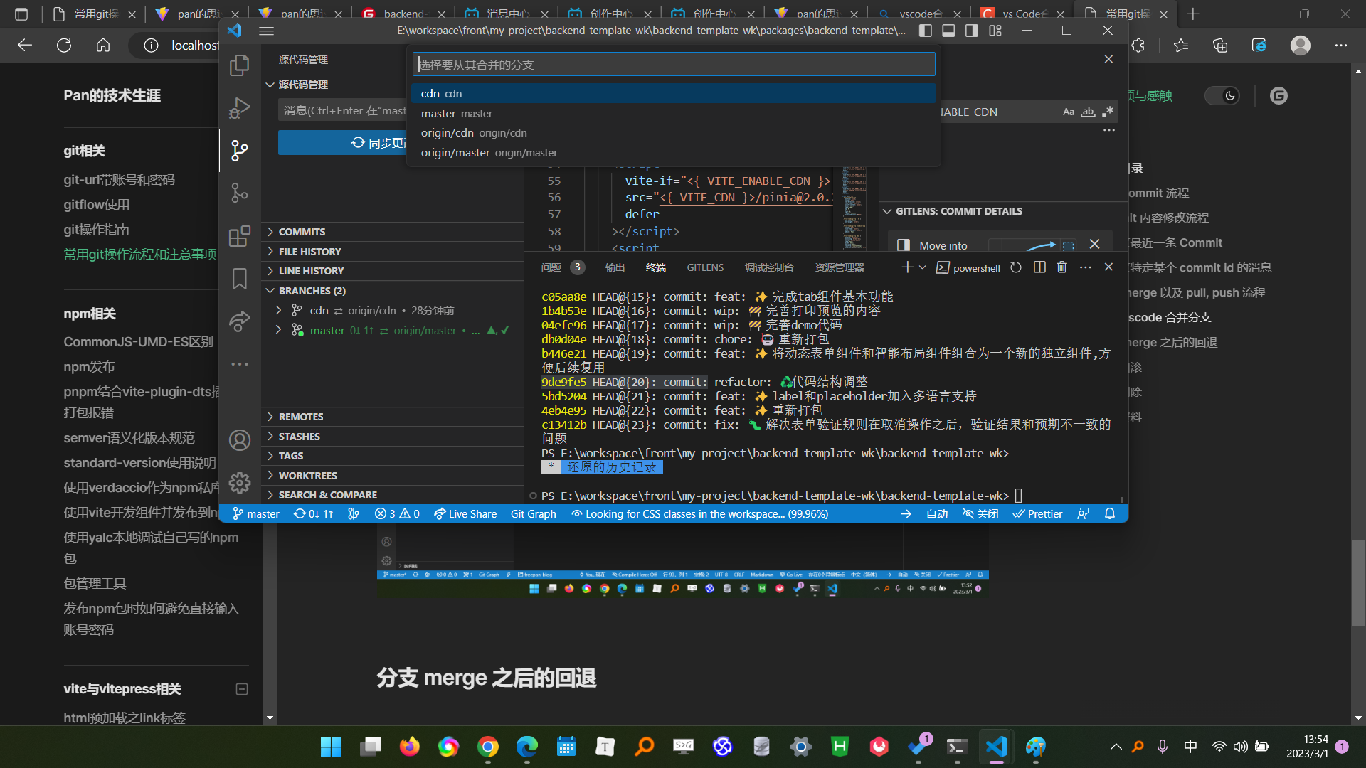 在这个界面,选择cdn分支, 此时就会将cdn分支合并到当前分支