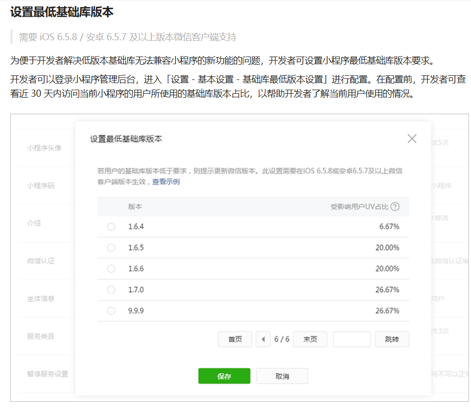 基础库:设置最低基础库版本